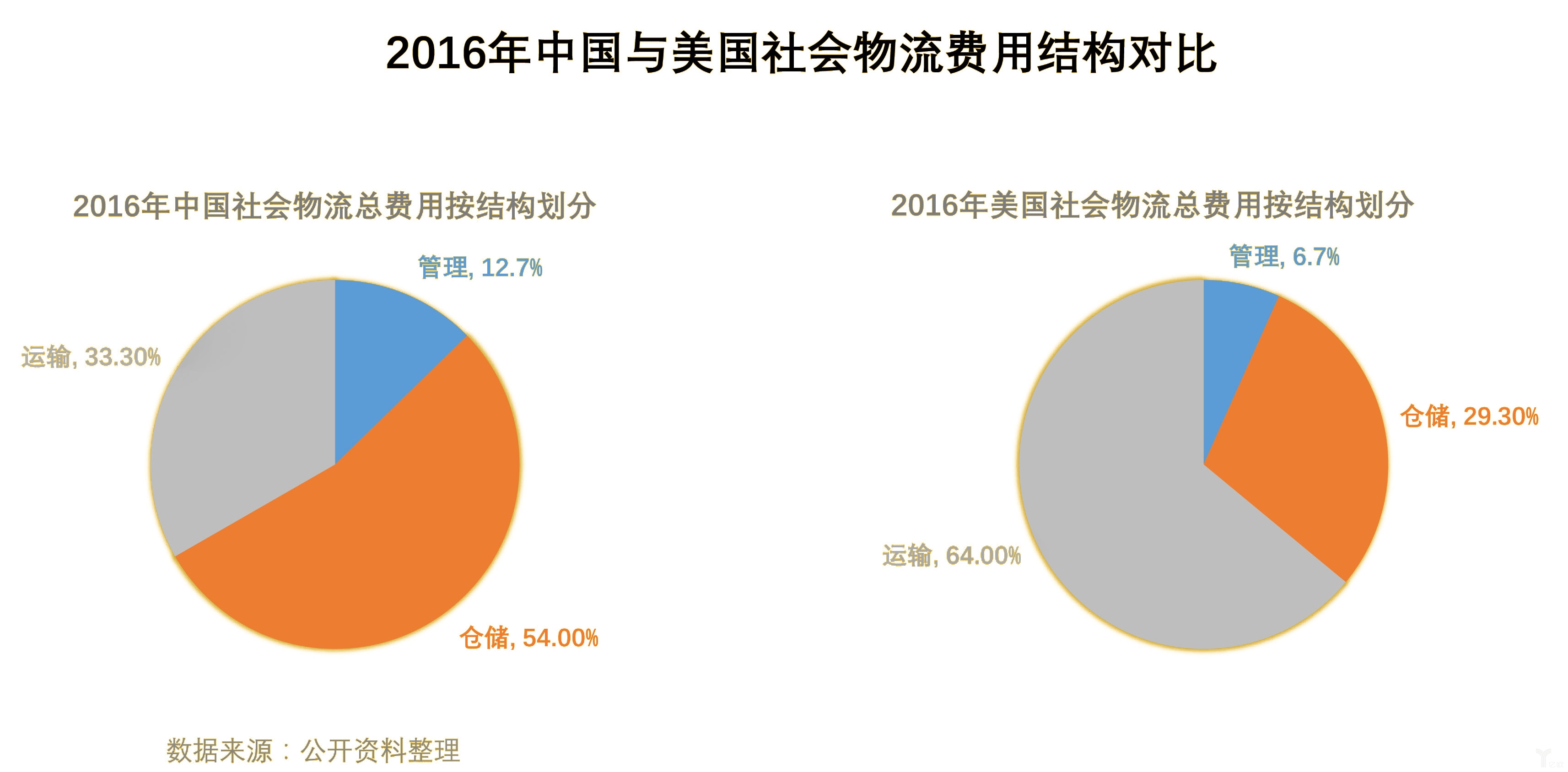物流費用主要包含倉儲、運輸、管理三個部分,從數據看,我國物流的倉儲和管理占比高,反映出的則是效率偏低。目前各國都通過降低庫存的成本費用,加快流轉的周轉速度達到最高效率,除了物流本身,高新技術、信息技術等產業的發展也是降低物流成本的一大促因。